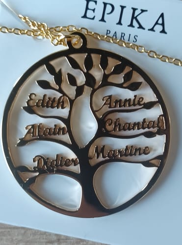 Ez a nyaklánc jóval a klasszikus személyre szabott ékszerek felett áll. A gravírozás hibátlan, és az élet fájának dizájnja harmonikus és szimbolikus. Az anyag tartósnak és ellenállónak tűnik, tökéletes mindennapi használatra vagy emlék ékszerként.