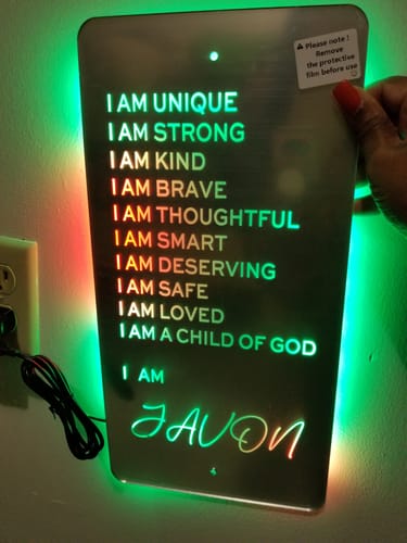 Den anpassningsbara affirmationsspegeln 'JAG ÄR' låter dig välja och ändra dina egna positiva affirmationer, vilket ger dig en skräddarsydd motivationsupplevelse varje dag. Tänk på dina mål och visa de tankar som inspirerar dig mest.