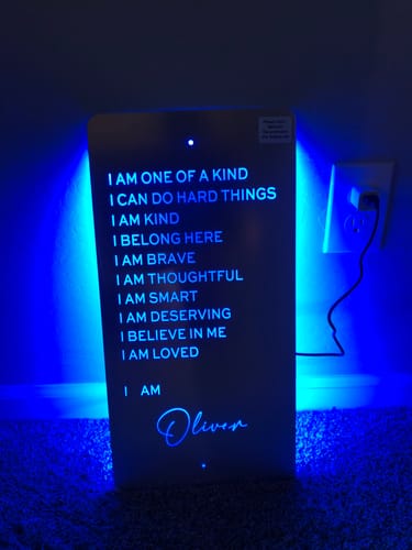 Denna affirmationsspegel är fantastisk! Att kunna anpassa mitt eget motiverande meddelande varje morgon ger mig en boost för dagen. En superidé för att hålla sig positiv!